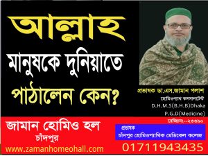 আল্লাহ তায়ালা যেন আমাদেরকে আমাদের সৃষ্টির প্রকৃত উদ্দেশ্য বুঝে সে অনুযায়ী জীবন যাপন করার তাওফিক দেন—আমিন।