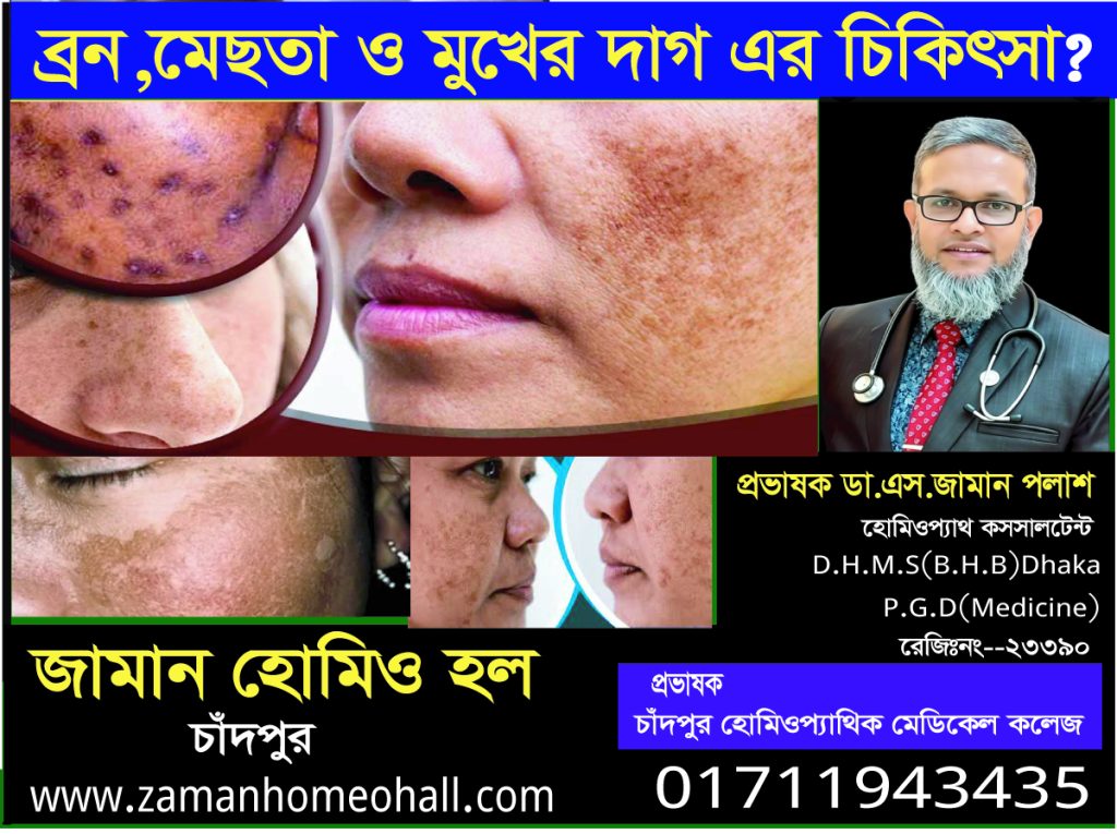 ব্রণ, মেছতা ও মুখের দাগ – কারণ, লক্ষণ ও হোমিও চিকিৎসা