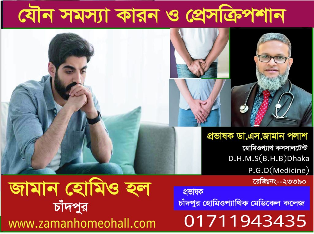 যৌন সমস্যার কারণ + লক্ষণ + হোমিও প্রেসক্রিপশন