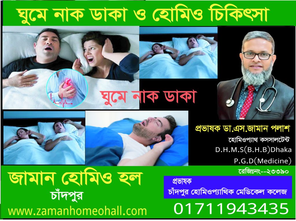 ঘুমের নাক ডাকা (Snoring)–এর কারণ, লক্ষণ ও হোমিওপ্যাথিক প্রেসক্রিপশন।