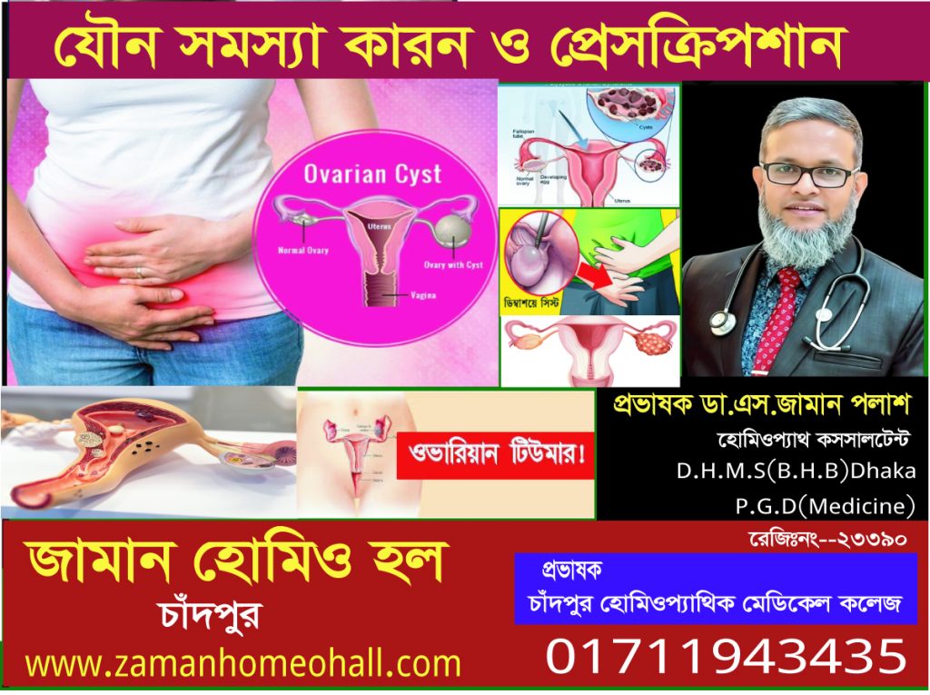 ডিম্বাশয়ের শক্ত (Solid) ও নরম (Cystic) টিউমার–এর কারণ, লক্ষণ ও হোমিওপ্যাথিক চিকিৎসা।